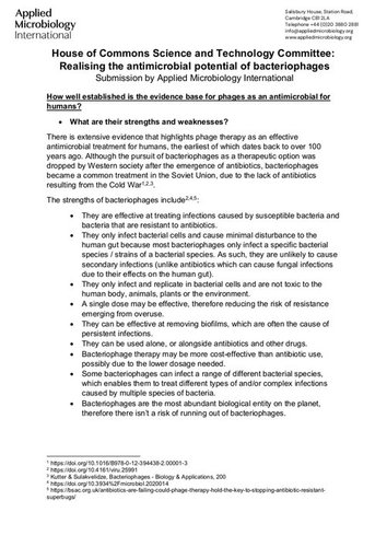 Applied Microbiology International submitted evidence to the House of Commons Science and Technology Committee inquiry on Realising the antimicrobial potential of bacteriophages.